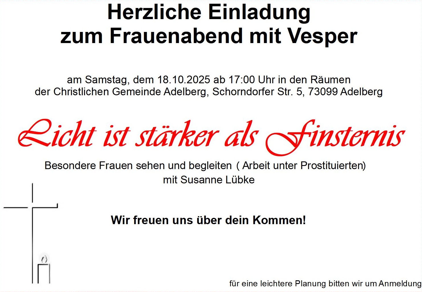 Sonntags findet die Versammlung in den Räumlichkeiten in der Schorndorferstraße 5 in Adelberg statt. Beginn der Andacht ist um 10:45 Uhr.